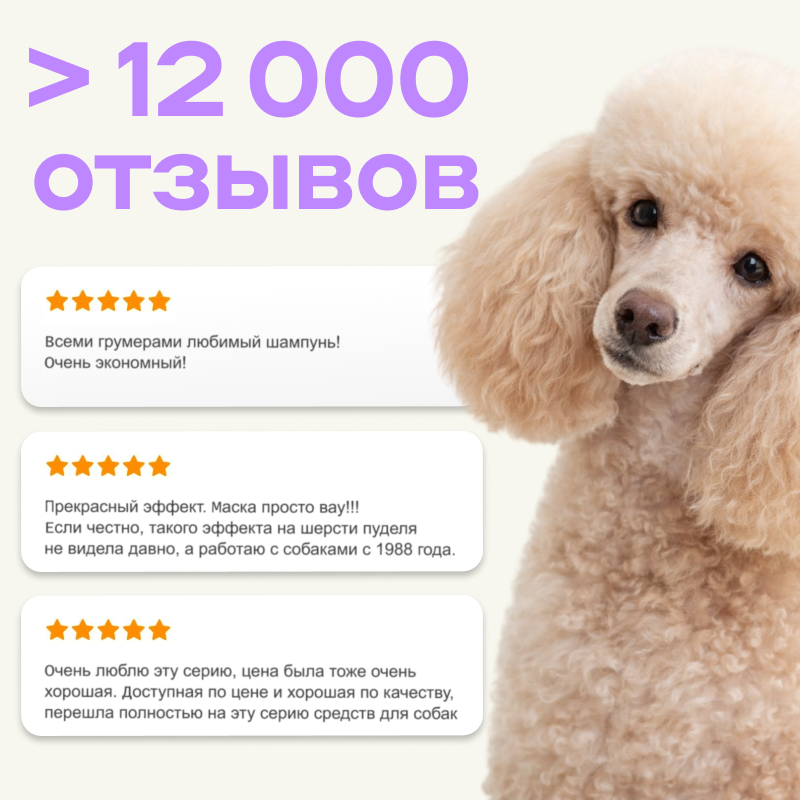 Подходит для регулярного применения для любого типа шерсти, собачек всех пород и размеров. Можно использовать для щенков от 6 месяцев.